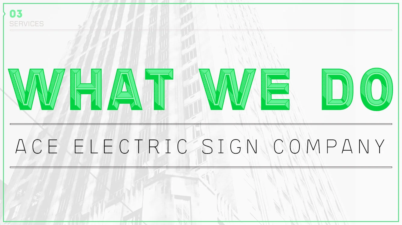 AESco, Ace Electric and Sign Company, creatively generates flexible signs, lighting, and architectural work that gets you noticed. A well executed sign is like good eye contact backed with a firm handshake. Be noticed for your positive qualities, be remembered so that your customers come back for more.
